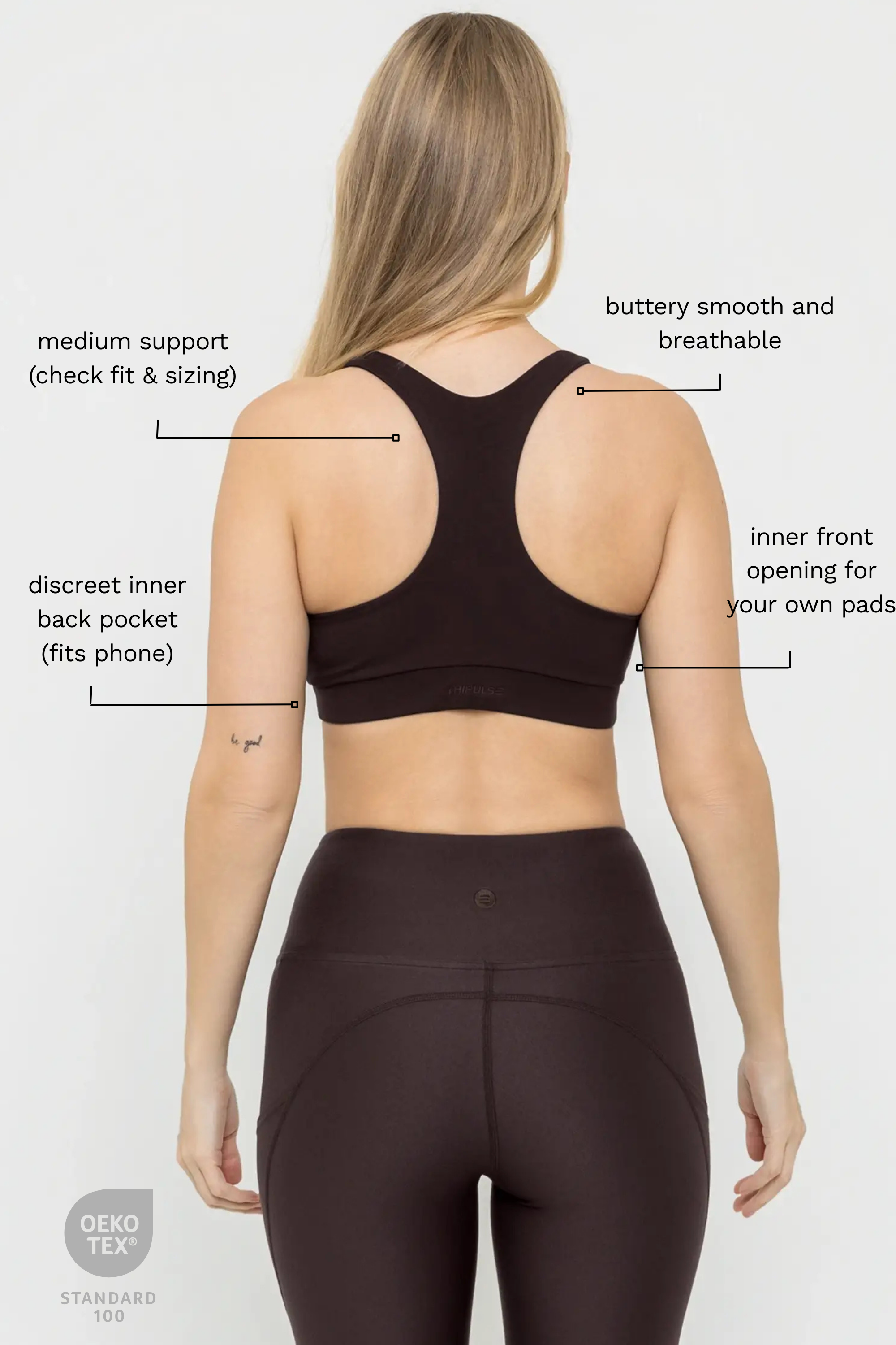 Our non-toxic activewear is OEKO-TEX® certified and independently tested – free from PFAS, BPA, phthalates, and other harmful substances. We also follow strict EU REACH safety standards.